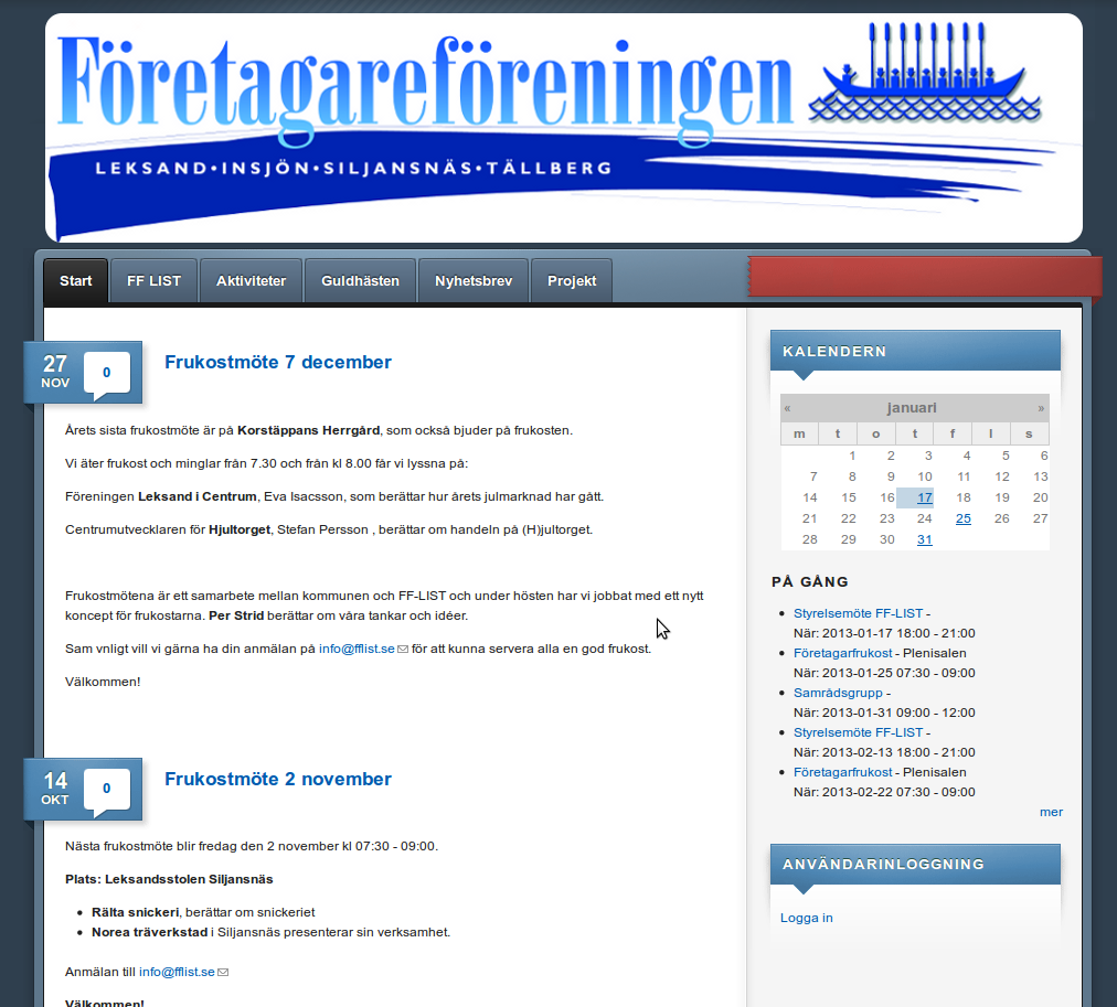 Vi har byggt Företagareföreningen i Leksand - FFLIST:s sajt. Sajten är byggd på Drupal med Docilitas Medlemssystem för fakturering mm.